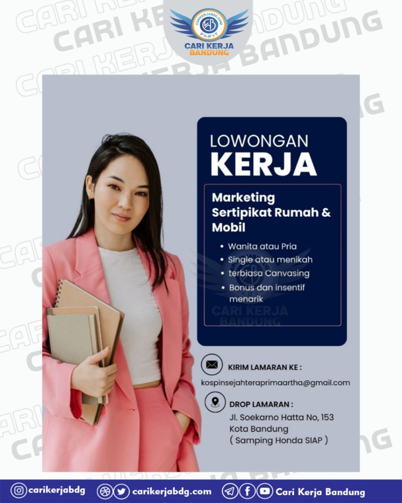Atau drop lamaran langsung ke: Jl. Soekarno Hatta No. 153 Kota Bandung (Samping Honda SIAP)
