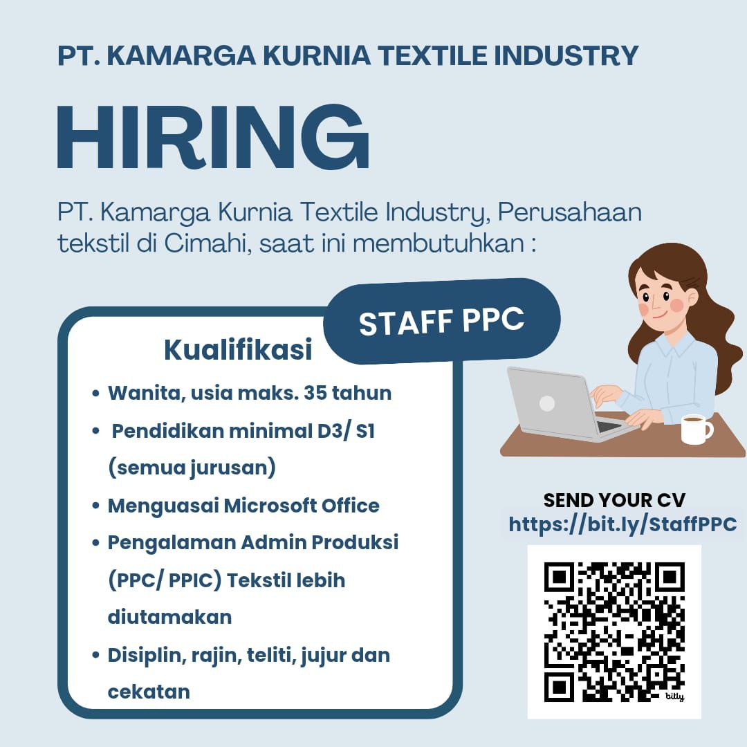 PT. Kamarga Kurnia Textile Industry, perusahaan tekstil terkemuka di Cimahi, saat ini membuka kesempatan kerja untuk posisi:
