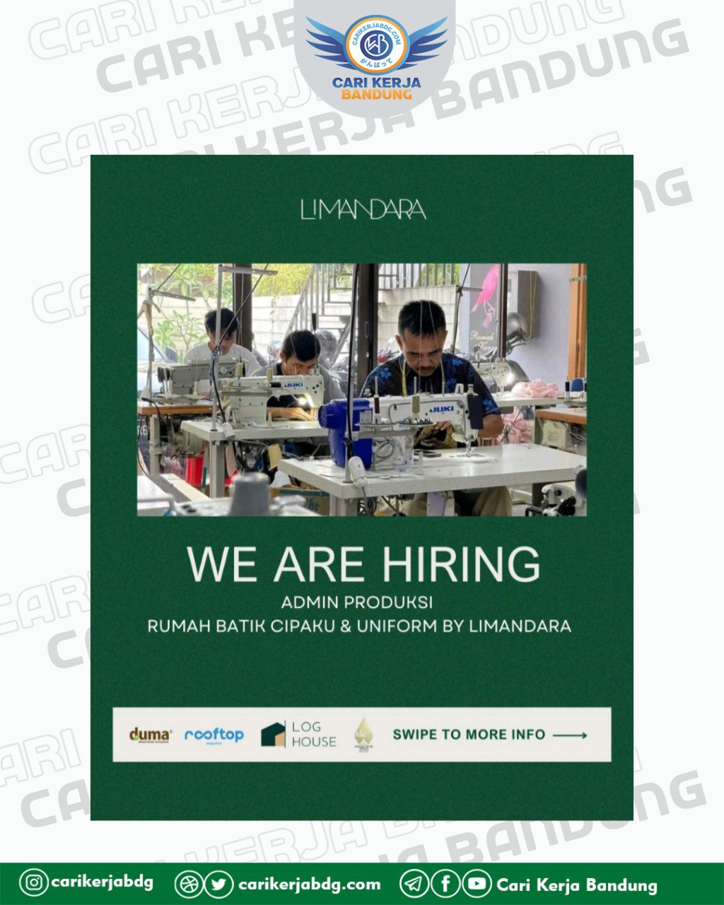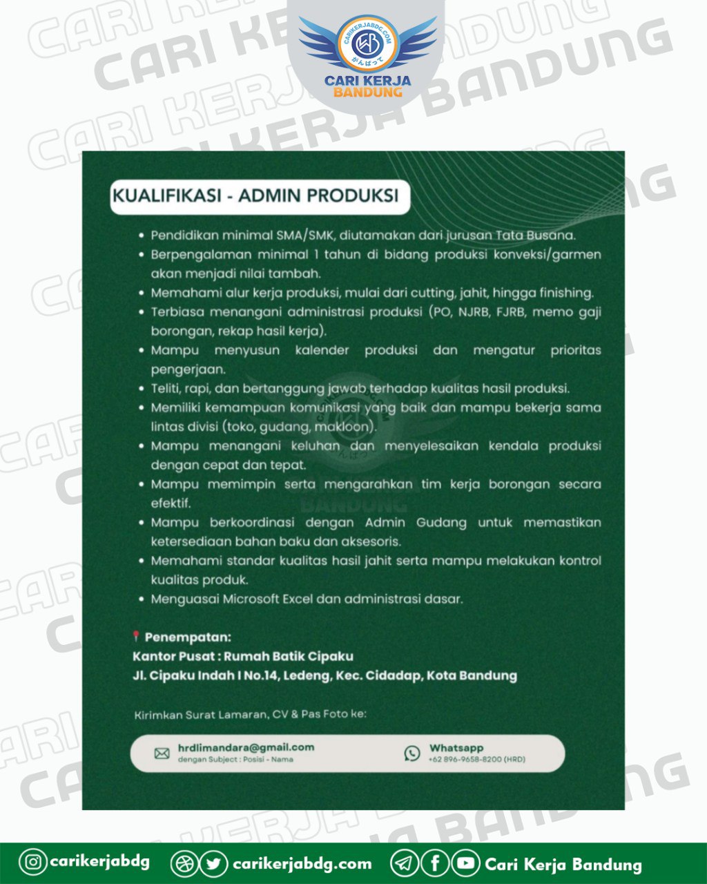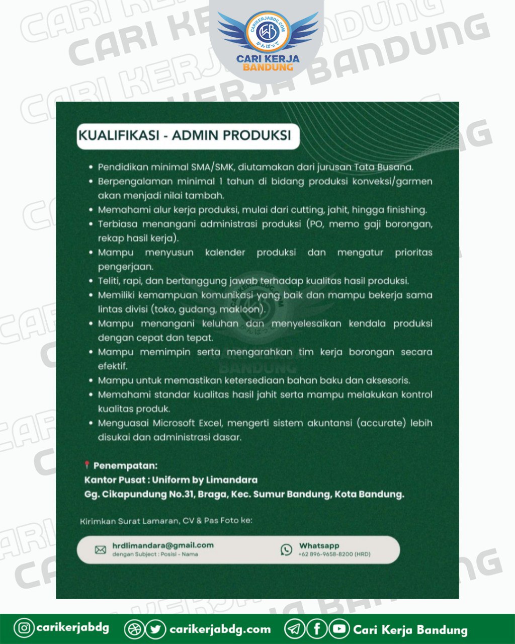 Email: hrdlimandara@gmail.com (Subject: Admin Produksi – Nama)
